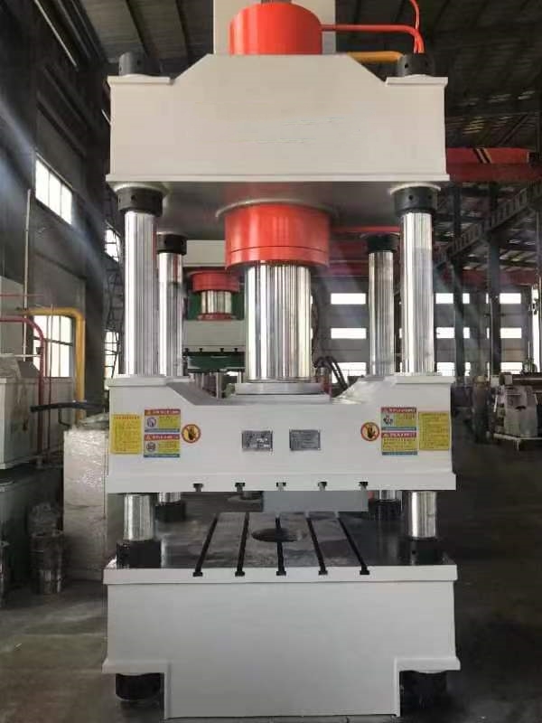 A four-column hydraulic press is a type of equipment that uses a liquid to transmit pressure. Its working principle is that the oil pump transports the hydraulic oil to the integrated cartridge valve block, and then distributes the hydraulic oil to the upper or lower chamber of the cylinder through each check valve and relief valve, and makes the cylinder move under the action of high-pressure oil.